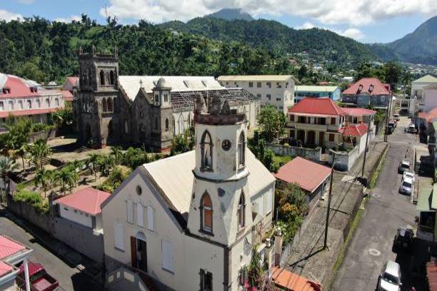 Aerial View of Our Lady of Fair Haven Cathedral After Hurricane Damage, Roseau 2018
