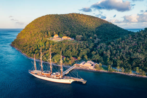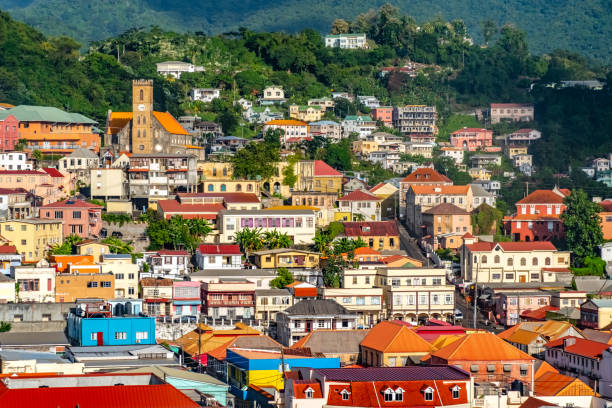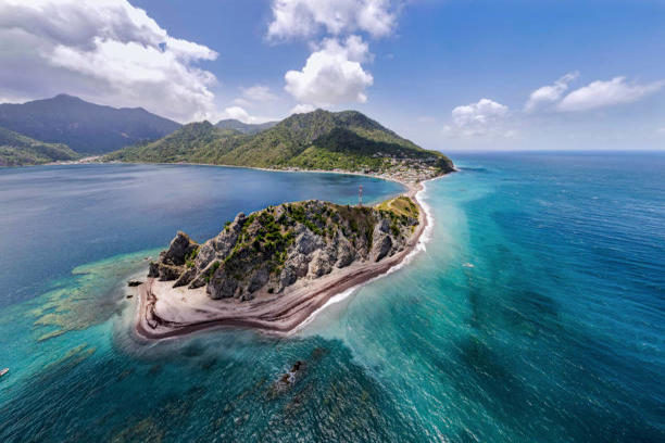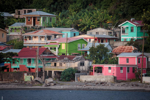 Colorful houses along Dominicas shore showcase Caribbean charm and vibrant culture