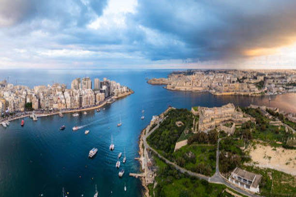 Aerial Panorama of Valletta and Sliema, Malta at Sunset