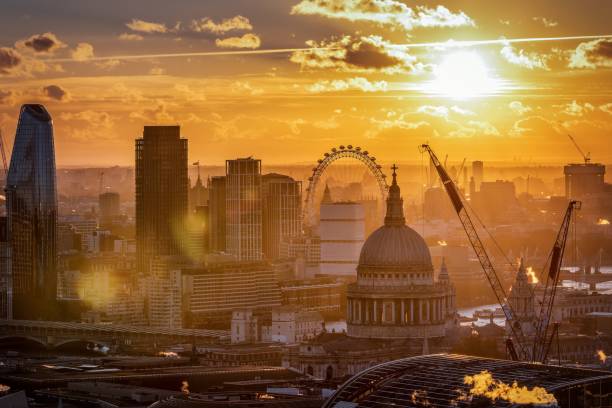 Elevated sunset view of the London downtown skyline